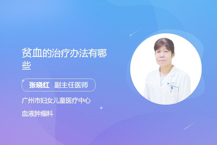 贫血的治疗办法有生活方式调理、补充造血原料、输血治疗等。