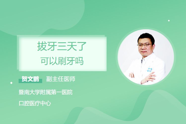 拔牙三天后一般可以刷牙,但具体能否刷牙要结合拔牙创口的恢复情况判断。