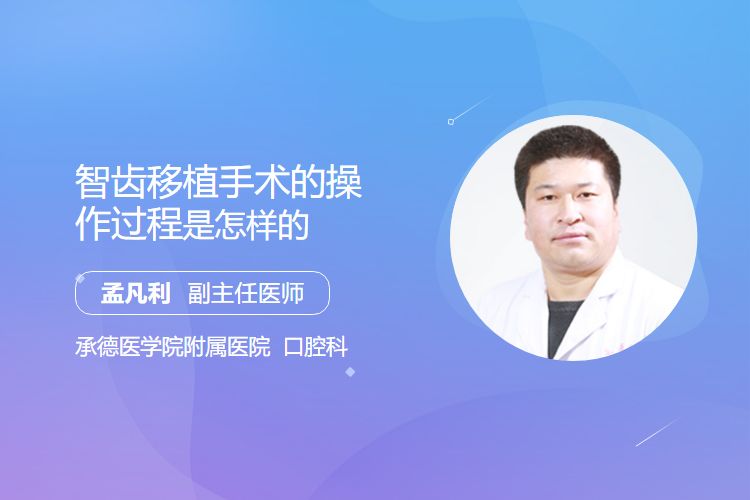 智齿移植手术的操作过程是术前评估、局部麻醉、智齿提取、准备接收窝、智齿移植等。