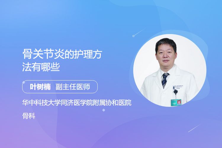 骨关节炎的护理方法包括减轻关节负担、适度运动、物理治疗、药物治疗、手术治疗等。