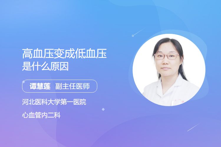 高血压变成低血压原因是药物过度使用、体位性低血压、心脏功能异常、脱水或失血、内分泌失调等。