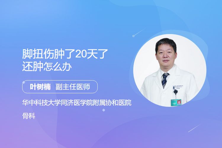 扭伤20天仍肿胀,可采取一般治疗、药物治疗、物理治疗等处理措施。