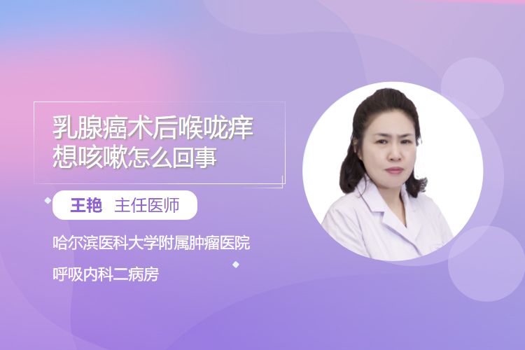 乳腺癌术后出现喉咙痒、咳嗽可能与呼吸道感染、药物副作用、放疗影响、胃食管反流或心理应激相关。需结合术后时间(如近期/远期)、症状特点(如干咳/湿咳、有无发热)及伴随情况(如吞咽痛、反酸)初步判断,老年患者、合并糖尿病者需警惕感染风险,建议及时就医排查。
