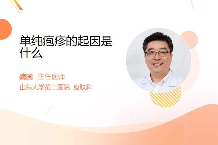 单纯疱疹由单纯疱疹病毒(HSV)感染引发,主要分为HSV-1(多见于口唇疱疹)和HSV-2(多见于生殖器疱疹)两型,病毒可通过潜伏感染长期存活并反复激活。