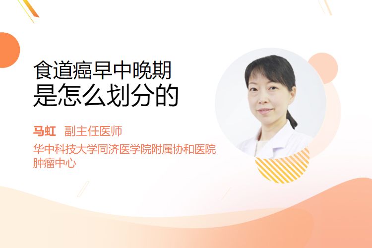 食道癌早中晚期主要根据肿瘤浸润深度、淋巴结转移及远处转移情况划分为I期早期、II期中期、III-IV期晚期。