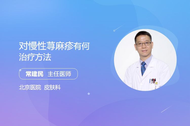 治疗慢性荨麻疹的方法有过敏原规避、药物治疗、免疫调节治疗等。