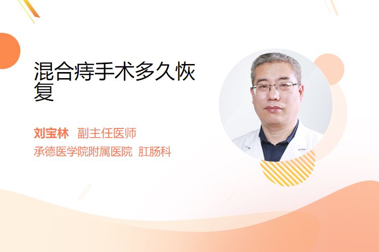 轻度混合痔(痔核小、脱出不明显)手术操作简单,术后2~3周可基本恢复;中重度混合痔(痔核大、反复出血或脱出)因手术范围大、组织损伤多,恢复时间延长至3~6周,部分患者需6周以上才能完全恢复。