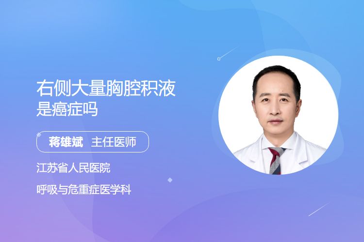 右侧大量胸腔积液不一定是癌症,需通过胸水穿刺检查、影像学评估及肿瘤标志物检测等明确病因。癌症(如肺癌、乳腺癌转移)是可能原因之一,但肺炎、结核、心功能不全等良性疾病也可引发,需结合病史与检查综合判断。