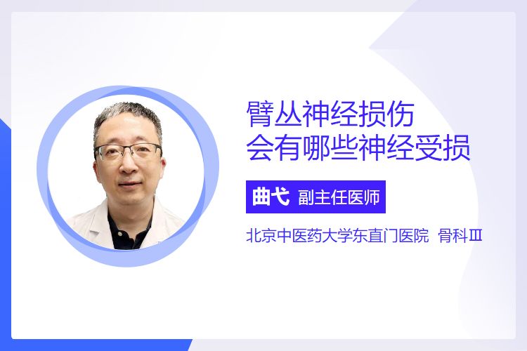 臂丛神经损伤主要涉及颈5(C5)至胸1(T1)脊神经前支及其分支,包括腋神经、肌皮神经、正中神经、尺神经、桡神经等,各分支受损后会表现出特定的运动及感觉功能障碍。