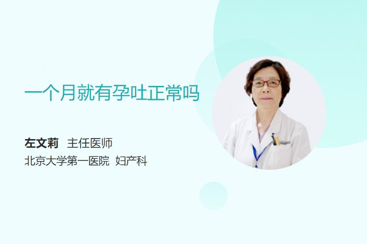 一个月左右(孕早期)出现孕吐可能是正常的生理反应,多数孕妇在孕6周左右开始出现孕吐,但个体差异可能导致部分孕妇在孕4-5周(即一个月左右)即出现恶心、呕吐等症状,与人绒毛膜促性腺激素(hCG)水平升高及胃肠道敏感有关。