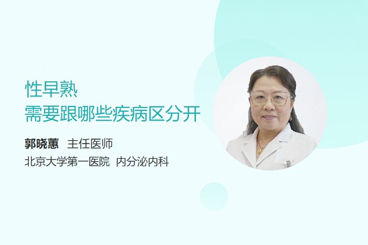性早熟需与中枢神经系统病变、肾上腺皮质增生症、甲状腺功能减退症、性腺肿瘤及McCune-Albright综合征等疾病区分,鉴别需结合临床表现、影像学及实验室检查。