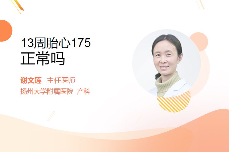 孕13周胎心175次/分钟略高于正常范围,需结合临床综合评估,警惕生理性波动或潜在异常,建议及时就医明确原因。