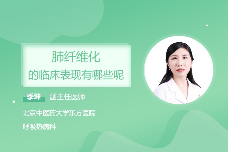 肺纤维化的临床表现主要包括进行性呼吸困难、干咳、活动耐力下降,部分患者可闻及双肺Velcro啰音,晚期出现杵状指和低氧血症。