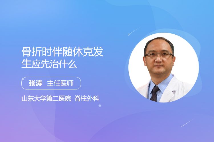 骨折时伴随休克发生要先治疗休克,具体措施包括补液升压、保持呼吸通畅、止血固定、纠正酸碱失衡、监测生命体征等。