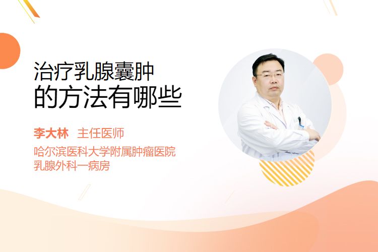 治疗乳腺囊肿的方法为一般治疗、药物治疗、手术治疗等。