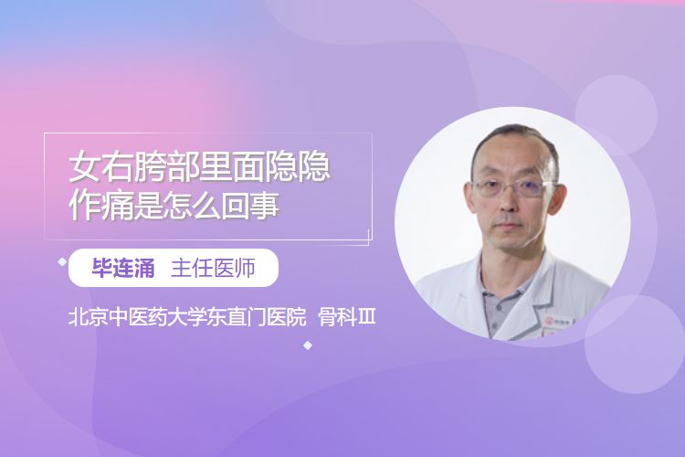 女右胯部里面隐隐作痛可能由肌肉骨骼系统、妇科、泌尿系统相关原因引起。肌肉骨骼系统原因包括髋部肌肉劳损(长期高强度运动致髋部肌肉过度使用劳损)、髋关节滑膜炎(感染、创伤或免疫因素等引发)、股骨颈骨折(中老年女性因骨质疏松等易发生);妇科原因有附件炎(病原体感染致内生殖器官炎症)、卵巢囊肿蒂扭转(育龄女性卵巢囊肿较大时可能发生蒂扭转);泌尿系统原因是输尿管结石(结石移动致输尿管痉挛),若持续不缓解或伴其他明显不适需及时就医检查明确病因并治疗。