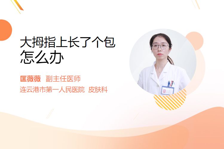 大拇指上的包块可能为腱鞘囊肿、寻常疣、痛风石等,建议先观察其大小、质地、活动度,避免挤压刺激,必要时就医明确诊断后处理。