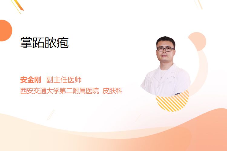 三、临床表现:典型表现为掌跖部位(手掌鱼际、足底前足等)出现针尖至粟粒大小脓疱,群集或散在分布,脓疱干涸后形成暗红色痂皮,脱屑后出现新脓疱。病程中可伴掌跖皮肤增厚、皲裂,冬季或潮湿环境下症状加重。长期反复发作可导致皮肤纤维化、甲营养不良。
