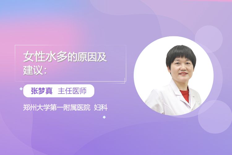 女性水多的常见原因有生理性的性兴奋阶段前庭大腺分泌润滑液及排卵期雌激素升高致宫颈黏液分泌增加,病理性的阴道炎症(细菌性、霉菌性、滴虫性)、宫颈炎症、盆腔炎症等可致白带增多,相关建议为保持外阴清洁干燥、分泌物异常有异常表现及时就医检查治疗、孕妇分泌物异常需谨慎及时就诊、有性生活史女性注意性卫生。