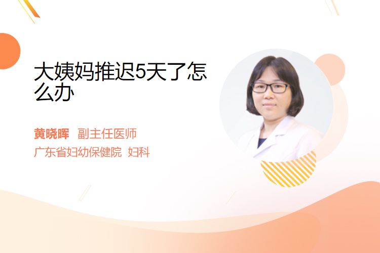 大姨妈是指月经。月经推迟5天建议调整生活方式、缓解精神压力、就医检查治疗等。