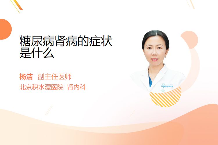 糖尿病肾病早期可有无明显症状但有微量白蛋白尿,中期会出现蛋白尿、水肿、血压升高,晚期为肾衰竭阶段,有严重蛋白尿、全身性水肿、肾功能减退表现及消化系统、全身症状,老年和儿童患者晚期情况各有其特点。