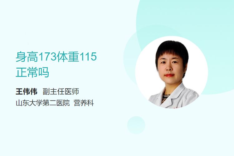 身高173cm、体重115斤(57.5kg)属于正常范围。BMI指数为19.1,处于健康区间(18.5~23.9),且无明显健康风险。