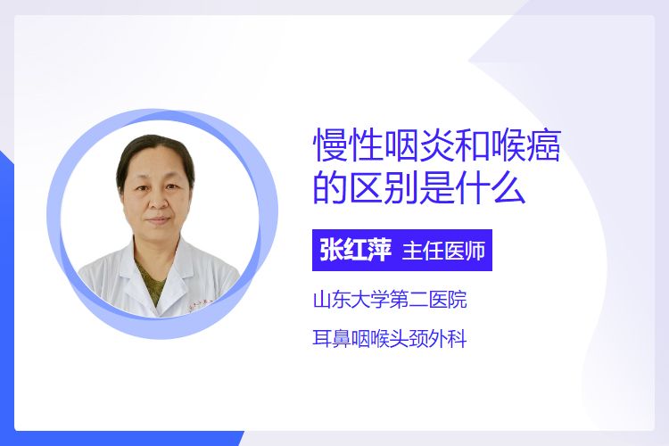 慢性咽炎是咽部黏膜慢性炎症,病程长(常超3个月),症状为咽部异物感、干燥,无肿瘤特征;喉癌是喉部恶性肿瘤,病程短(数月至数年),症状为声音嘶哑、吞咽困难、痰中带血,且可能伴随颈部肿块。
