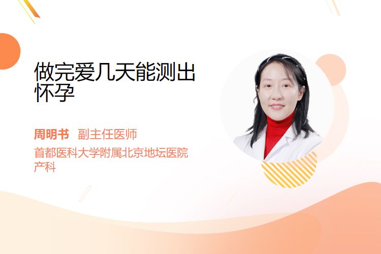做完爱后,最早可通过血人绒毛膜促性腺激素(HCG)检测在7~10天内发现怀孕,尿液检测(早孕试纸)通常需月经推迟1~2天(约14~16天),具体时间因检测方法和月经周期规律而异。