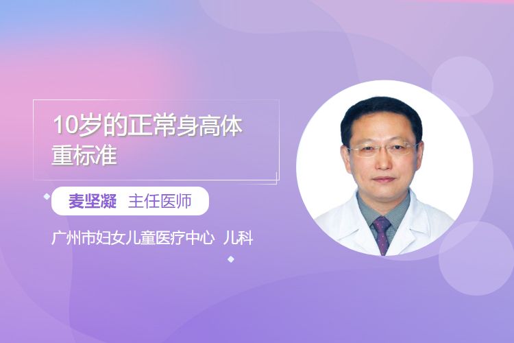 10岁儿童正常身高体重标准参考中国7-18岁儿童青少年生长标准,存在性别差异:男孩平均身高140.2cm(范围125.9-154.5cm,第3-97百分位),平均体重33.7kg(范围28.2-40.2kg);女孩平均身高141.1cm(范围126.5-155.3cm),平均体重33.4kg(范围27.6-39.3kg),身高体重在上述范围内属正常发育。