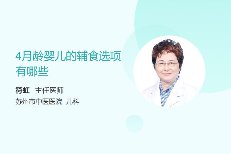 4月龄婴儿的辅食选项主要包括高铁米粉、蔬菜泥、水果泥、小米油、蛋黄泥、根茎泥。
