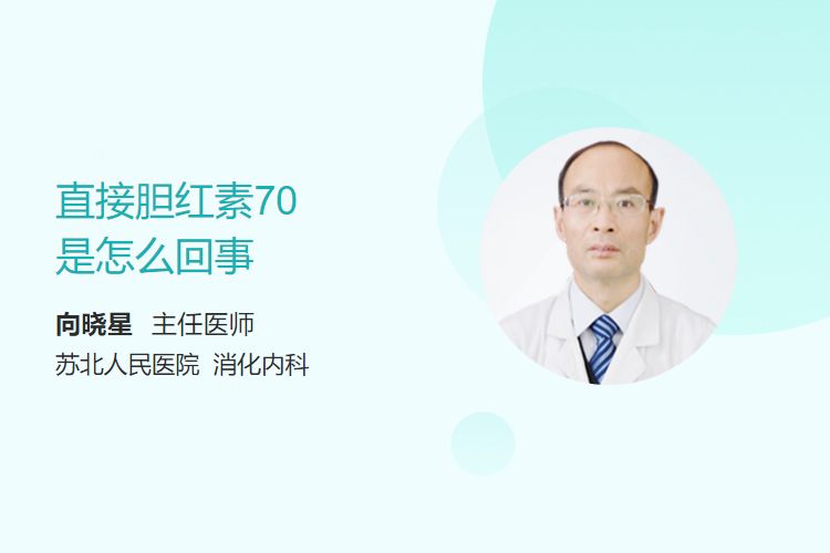 直接胆红素(结合胆红素)70μmol/L显著高于正常参考范围(通常0~6.8μmol/L),提示可能存在肝胆系统异常。