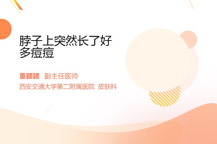 脖子上突然长很多痘痘,可能是痤疮、毛囊炎或皮脂腺堵塞,通常与激素变化、皮肤清洁不足或细菌感染相关,多数情况下1-2周内可自行缓解或通过护理改善。