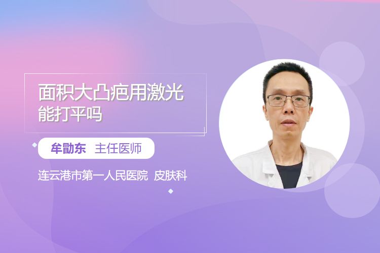 面积大凸疤(增生性瘢痕或瘢痕疙瘩)激光治疗的效果有限,通常难以完全打平至正常皮肤状态,但可通过多次治疗改善外观、软化质地。