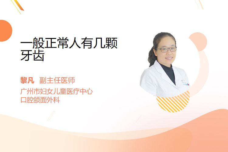 一般正常人有28~32颗牙齿,包含20颗乳牙和28颗恒牙(含4颗智齿),恒牙萌出后若智齿未完全生长或先天缺失,总数会少于32颗。