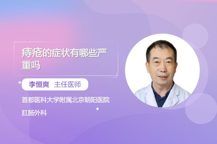 痔疮症状主要表现为便血、肛门肿物脱出、疼痛及瘙痒等,多数症状较轻者通过保守治疗可缓解,但若未及时干预,可能发展为贫血、嵌顿坏死等严重并发症。
