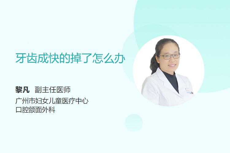 牙齿成快的掉了,可能是龋齿、牙周病或外力损伤等原因导致,需根据具体情况处理。若牙齿松动但未完全脱落,可先固定观察;若已脱落,需在30分钟内进行再植或保存。