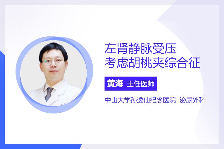 左肾静脉受压,考虑胡桃夹综合征,是指左肾静脉在腹主动脉与肠系膜上动脉之间受压变窄,导致左侧精索静脉或卵巢静脉压力升高,常见于青少年体型偏瘦者,通常表现为反复肉眼或镜下血尿、直立性蛋白尿及左侧腰腹部不适,症状可能随生长发育或体型变化有所波动。
