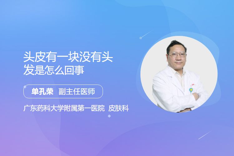 头皮出现一块无发区域,最常见于斑秃(自身免疫性)、雄激素性脱发(局部早期)、感染或炎症性脱发(如毛囊炎)或物理性损伤(如牵拉、外伤),需结合病史和检查明确诊断,早期干预可降低进展风险。