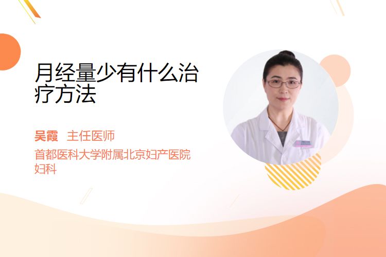 月经量少的治疗方法包含药物调理内分泌、手术修复宫腔问题、中医辨证调理、饮食营养补充、改善生活作息、调节情绪释放压力。