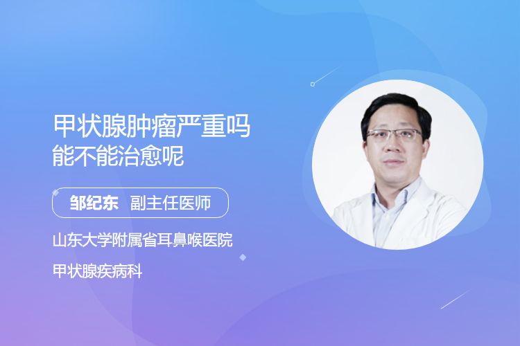 总体而言,甲状腺肿瘤的严重程度和能否治愈取决于肿瘤的性质、病理类型、分期等多种因素。一旦发现甲状腺肿瘤,应及时就医,进行详细检查评估,以便采取合适的治疗方案。