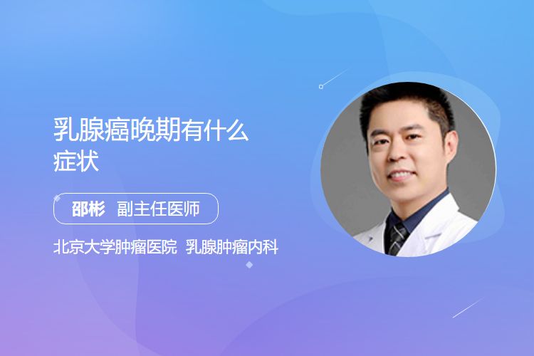 乳腺癌晚期常见症状包括疼痛(如骨痛、神经痛)、体重下降、食欲减退、乏力、呼吸困难、咳嗽、皮肤或皮下结节等转移灶表现,以及因肿瘤侵犯或压迫导致的肢体水肿、吞咽困难等。