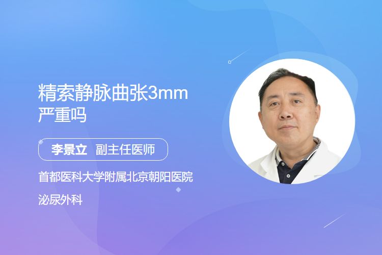 严重程度判断需结合症状与检查结果:若伴随阴囊坠胀、疼痛或精液分析异常(如精子数量减少、活力降低),则提示病情进展风险升高,需进一步检查评估是否需干预。若无上述情况,即使管径3mm,也多认为风险较低。