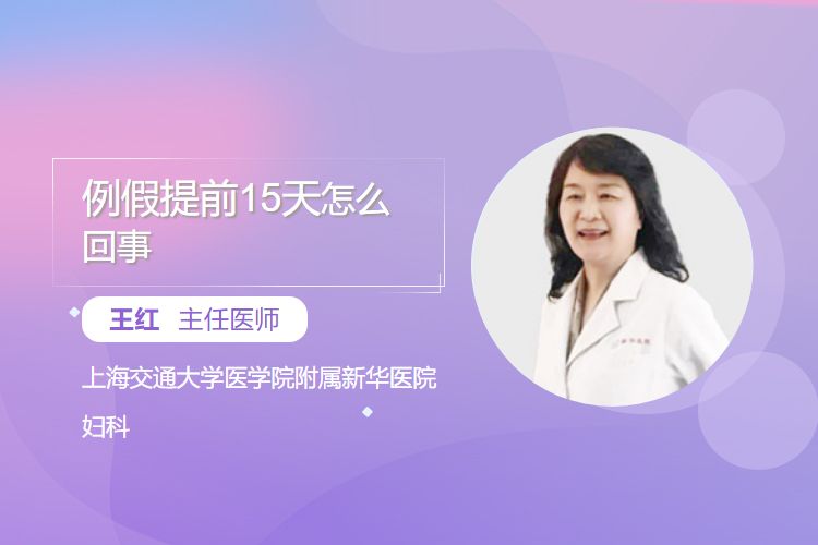 例假是指月经。月经提前15天可能与情绪波动、内分泌紊乱、妇科炎症、药物影响等原因有关。