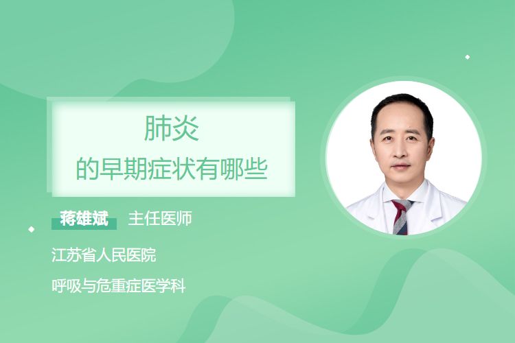 肺炎早期症状主要包括发热、咳嗽、咳痰、胸痛、胸闷气短、乏力畏寒。