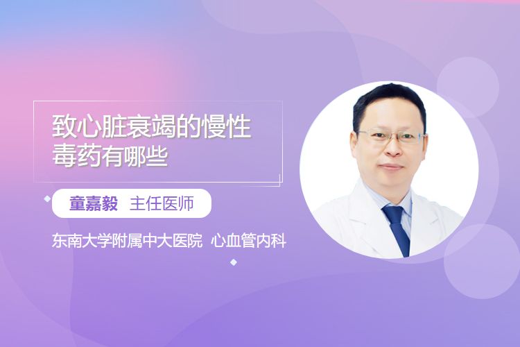 致心脏衰竭的慢性毒药有可卡因、化疗药物、镇静与兴奋剂、过量激素类药物等。