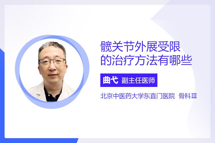 针对髋关节外展受限的治疗包括康复治疗、物理治疗和手术治疗。康复治疗有关节活动度(主动、被动)、肌力(髋外展肌)、平衡训练;物理治疗有热敷、超短波、超声波;手术治疗包括髋关节松解术(适用于保守无效的软组织粘连挛缩情况)和髋关节置换术(适用于严重病变保守无效情况,儿童较少用)。
