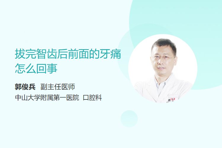 原因:干槽症多发生在拔智齿后2-3天,主要症状为拔牙窝剧烈疼痛,且疼痛可向周围组织放射,包括前面的牙齿。其发生与拔牙创伤大、感染等因素有关。拔牙后血凝块脱落或感染,导致牙槽骨暴露,刺激周围神经引起疼痛。