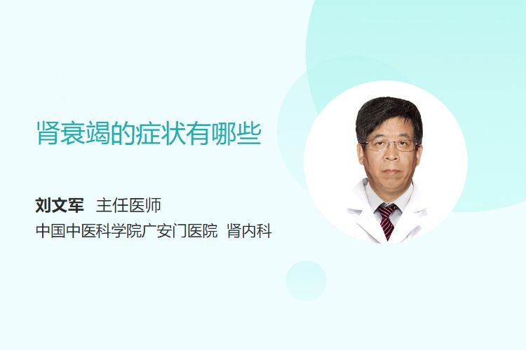肾衰竭症状包括尿量异常(少尿或无尿,或夜尿增多)、水肿(眼睑、下肢水肿)、电解质紊乱(高钾血症、低钙血症)、消化系统症状(恶心呕吐、食欲减退)、贫血(面色苍白、乏力)等。