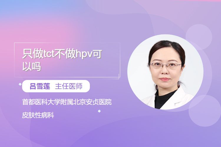 总之,只做TCT不做HPV不是绝对不可以,但从全面排查宫颈癌风险的角度来说,联合TCT和HPV检测更为理想,具体的筛查方案应根据个人的年龄、健康状况、性生活史等多方面因素由医生综合判断来确定。