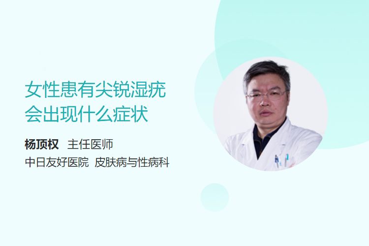 女性尖锐湿疣通常在感染人乳头瘤病毒(HPV)后1~3个月出现症状,表现为生殖器或肛周的单个或多个淡红色小丘疹,逐渐增大呈乳头状、菜花状或鸡冠状,可能伴有瘙痒、灼痛或出血。